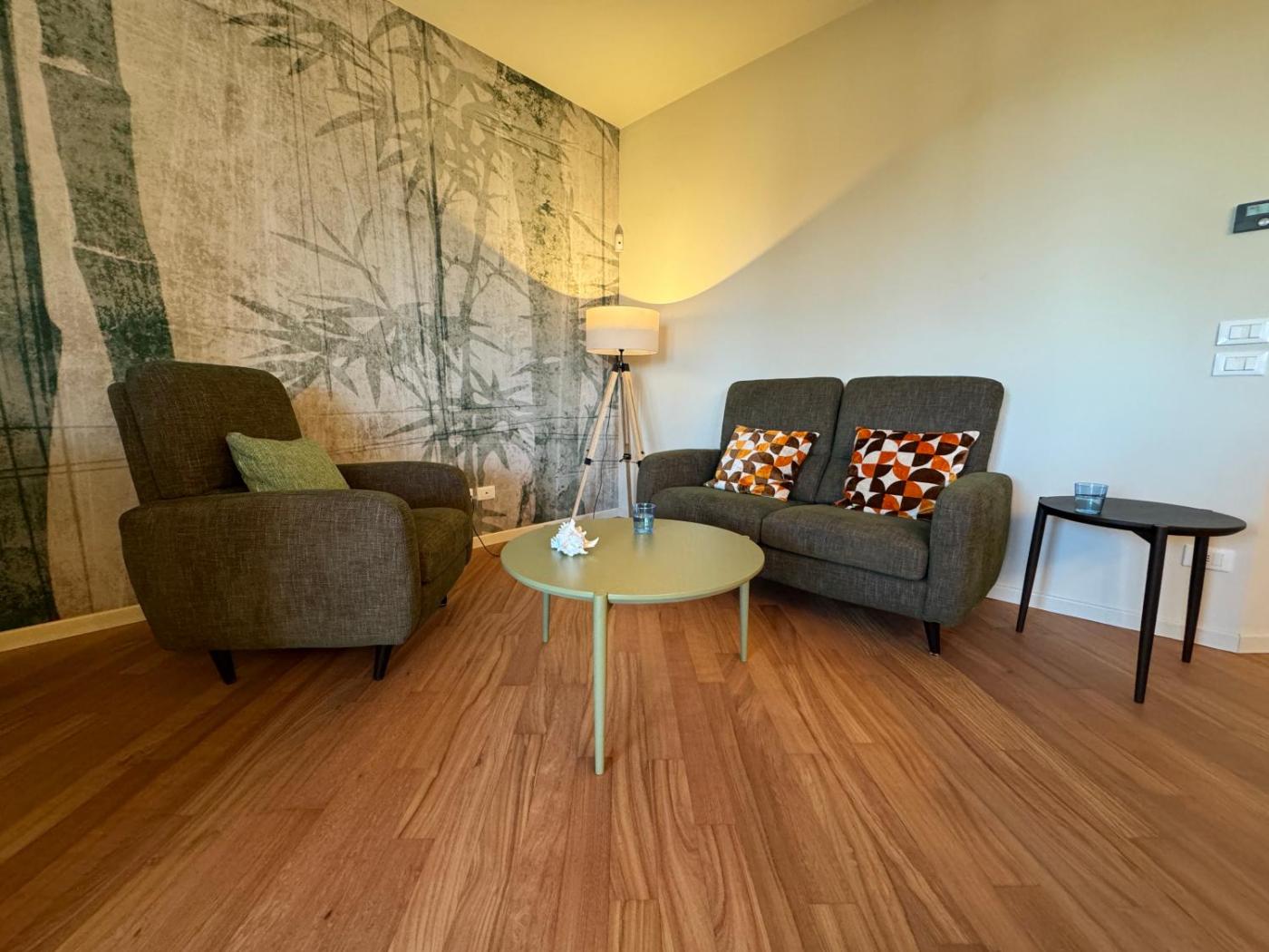 Appartamento con 2 Camere da Letto e Terrazza. Boasting a private entrance, this air-conditioned apartment features 1 living room, 2 separate bedrooms and 1 bathroom with a walk-in shower and a bidet. Meals can be prepared in the kitchen, which has a refrigerator, a dishwasher, kitchenware and an oven. The spacious apartment features a flat-screen TV with streaming services, soundproof walls, a coffee machine, a seating area as well as lake views. The unit has 2 beds.